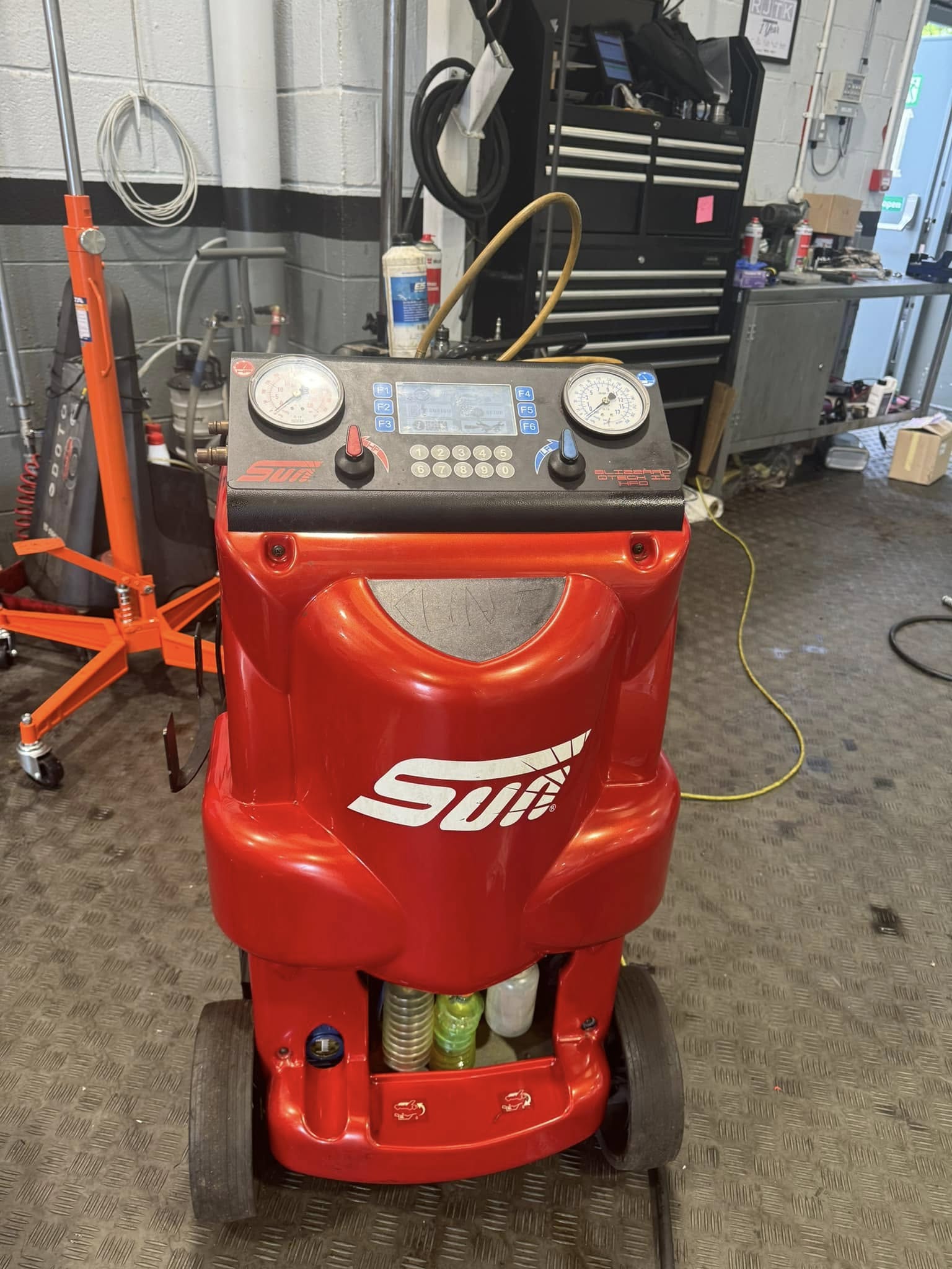 Your machines vacuum pump oil will become contaminated over time with moisture and oils drawn in from the vehicles system you are working on, to keep vacuum pump running efficiently we advise replacement on every service.
